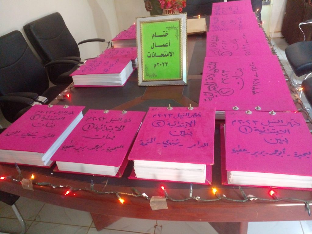 واستعرض الأستاذ صلاح محمد سليمان ،مدير الإدارة العامة للتقويم والامتحانات بالولاية بالإنابة المراحل التي مرت بها نتيجة امتحانات الشهادة الابتدائية للعام(٢٠٢٣م) حتى مرحلة التغليف والتجليد، مشيراً إلى أن الإدارة إلى جانب النسخة الخاصة بالإدارة فقد أعدت نسخة أخرى لسكرتير امتحانات السودان للتوثيق.